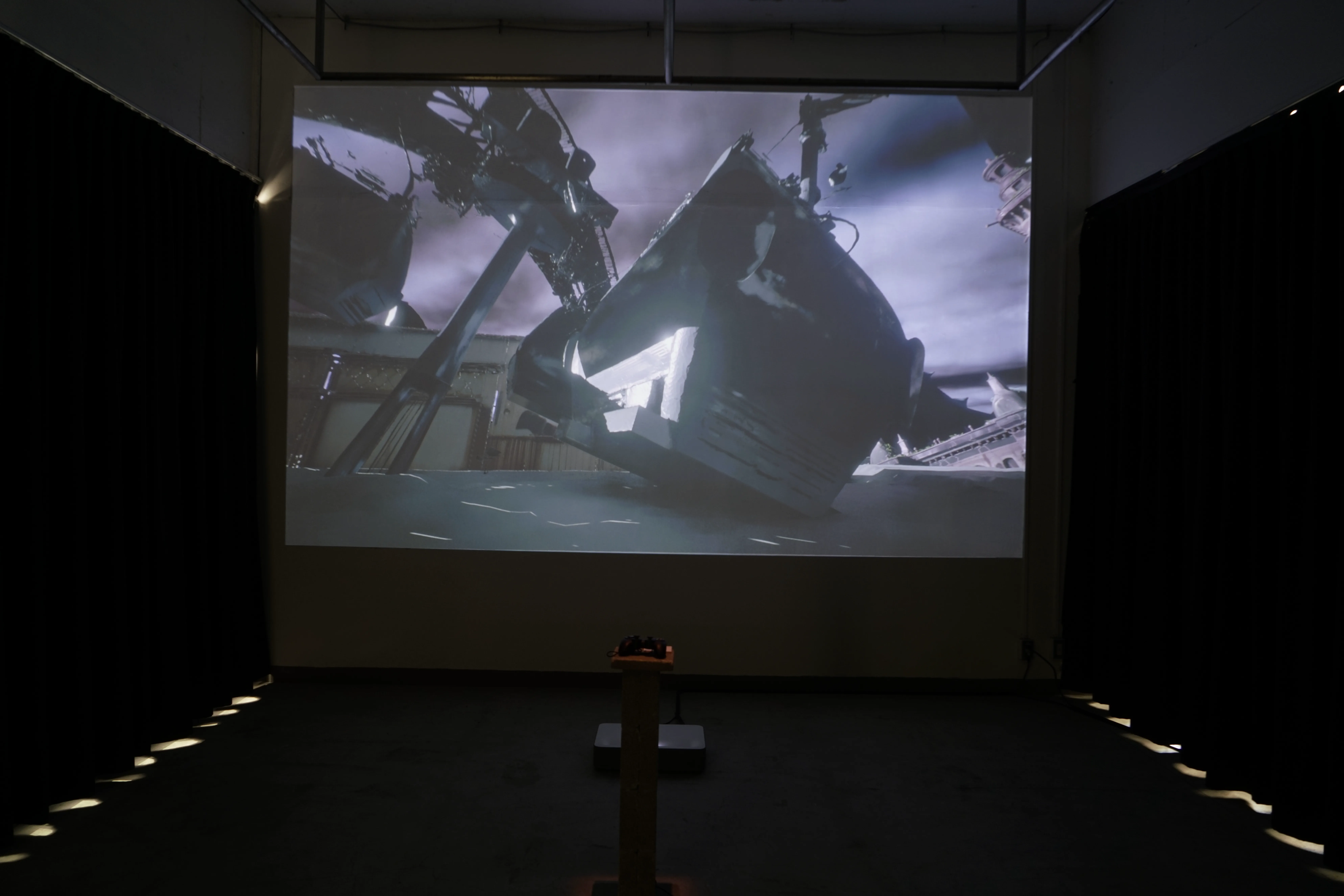 横浜は震災と戦災という二度のカタストロフを経て、大きく姿を変えてきた。一方で、その深層には、数千年単位で刻まれた地質学的な時間が流れている。本作は、西洋のロマン主義的廃墟から磯崎新の孵化過程としての廃墟に至る廃墟の美術史を念頭に、横浜の地形を土台として、さまざまな時代の廃墟や建築を同一の空間に併置する。これにより過去・現在・未来の判別が容易ではない廃墟のCGを構築する。ここにあるのは私たちの過去なのか。現在なのか。未来なのか。
